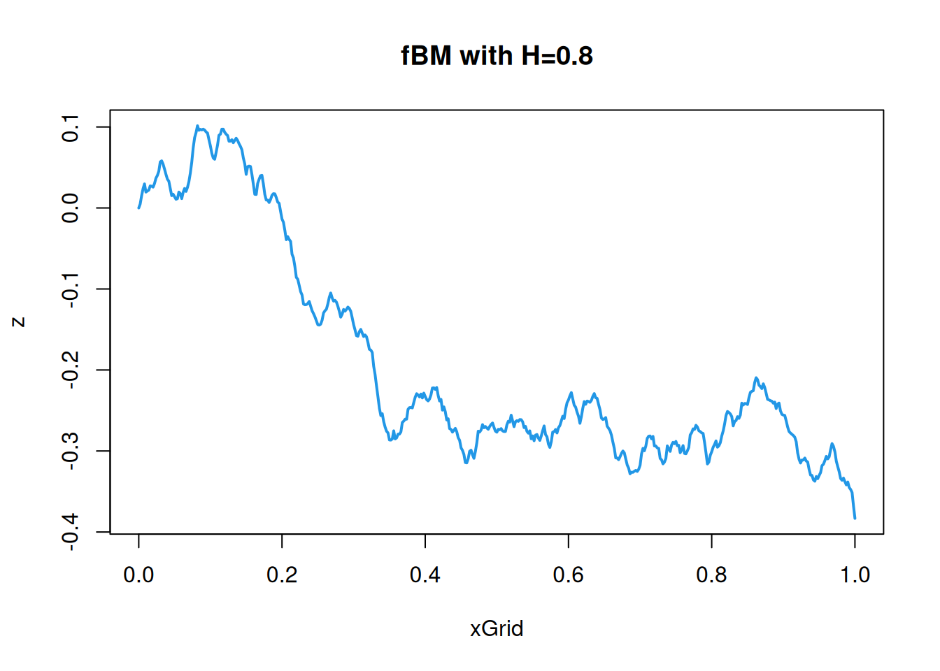 \] We will generate samples using \(H=0.8\), since this is often felt to correspond to the smoothness of many processes observed in nature. 1d first.
