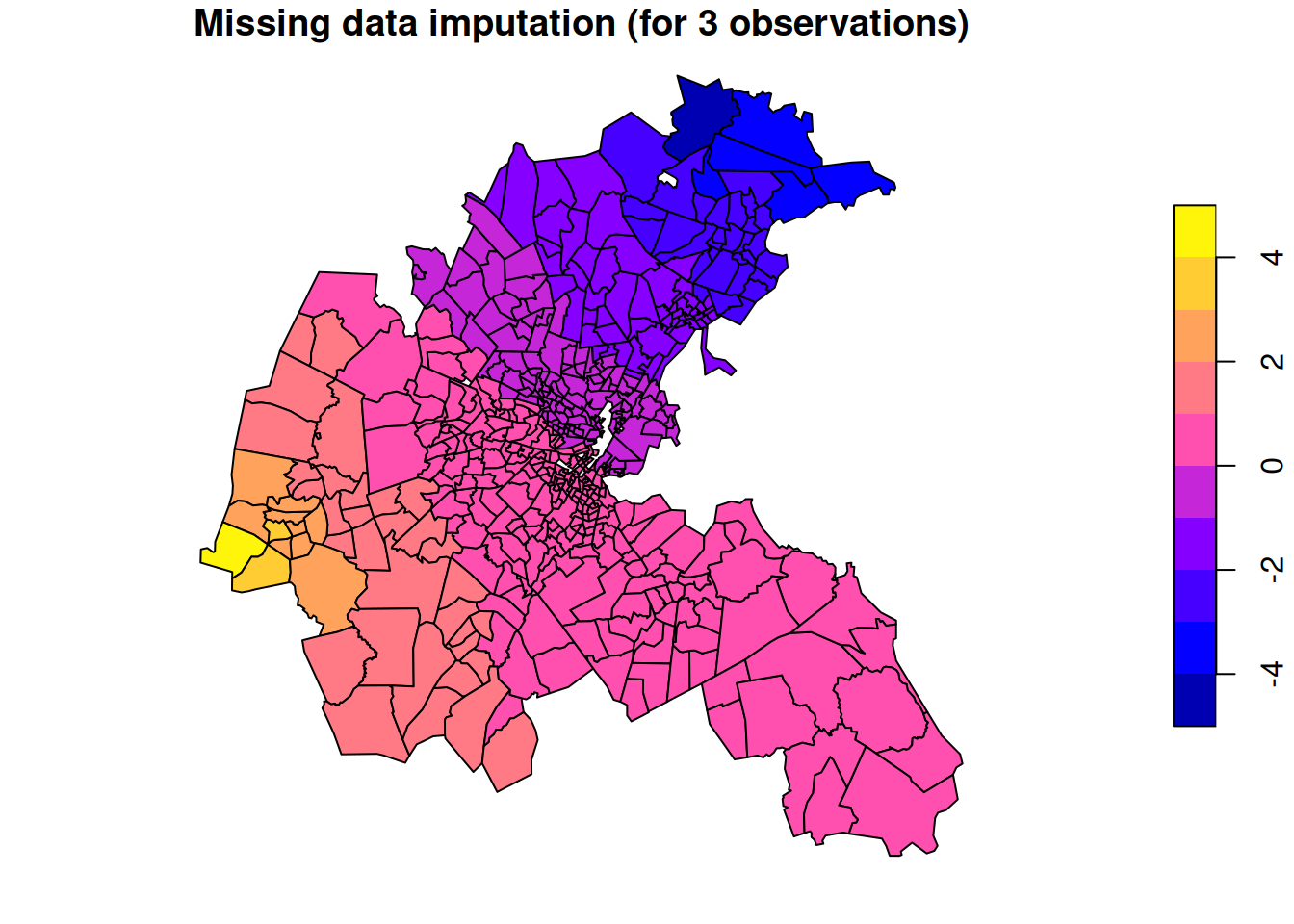 main="Missing data imputation (for 3 observations)")